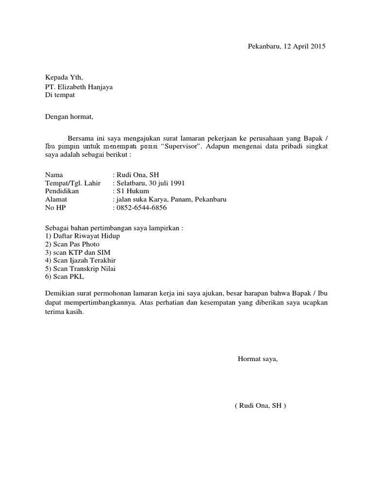 Contoh Surat Lamaran Kerja Supervisor Yang Baik Dan Benar Surat Lamaran Kerja Desain Contoh Surat Dk8xded8jr